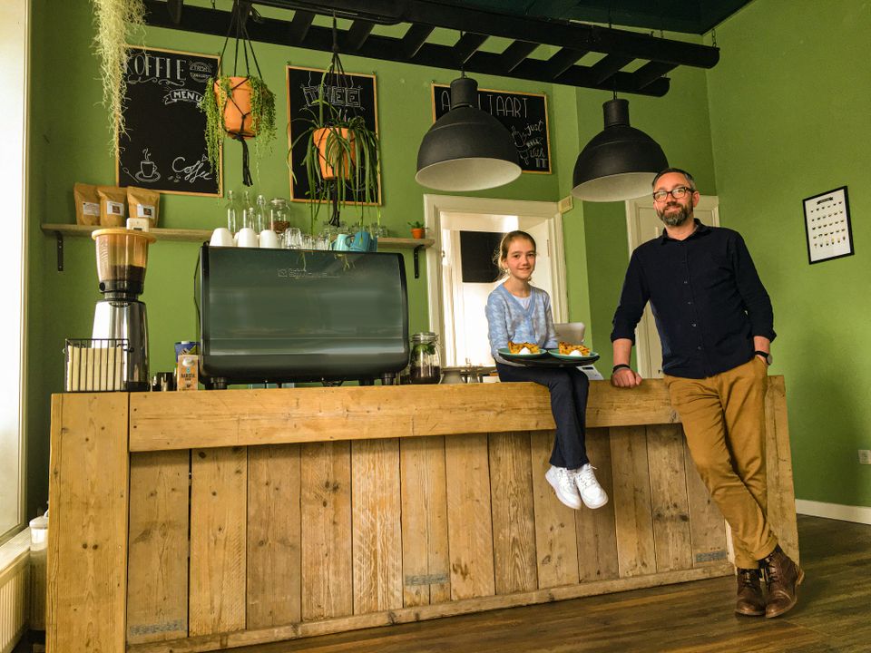 Appingedam - Marije (12 jaar) verzon, bij haar verhuizing naar het Gouden Pand 1 in Appingedam, dat ze wel koffie, thee en appeltaart konden gaan verkopen. Ook bedacht ze meteen een passende naam: ’t Gouden Appeltje. Een superleuk idee, dat het hele gezin heeft omarmd. De benedenverdieping van ‘Het Gouden Pand’ is door Margriet, de moeder van Marije, ingericht en omgetoverd tot een gezellig koffiecafé.