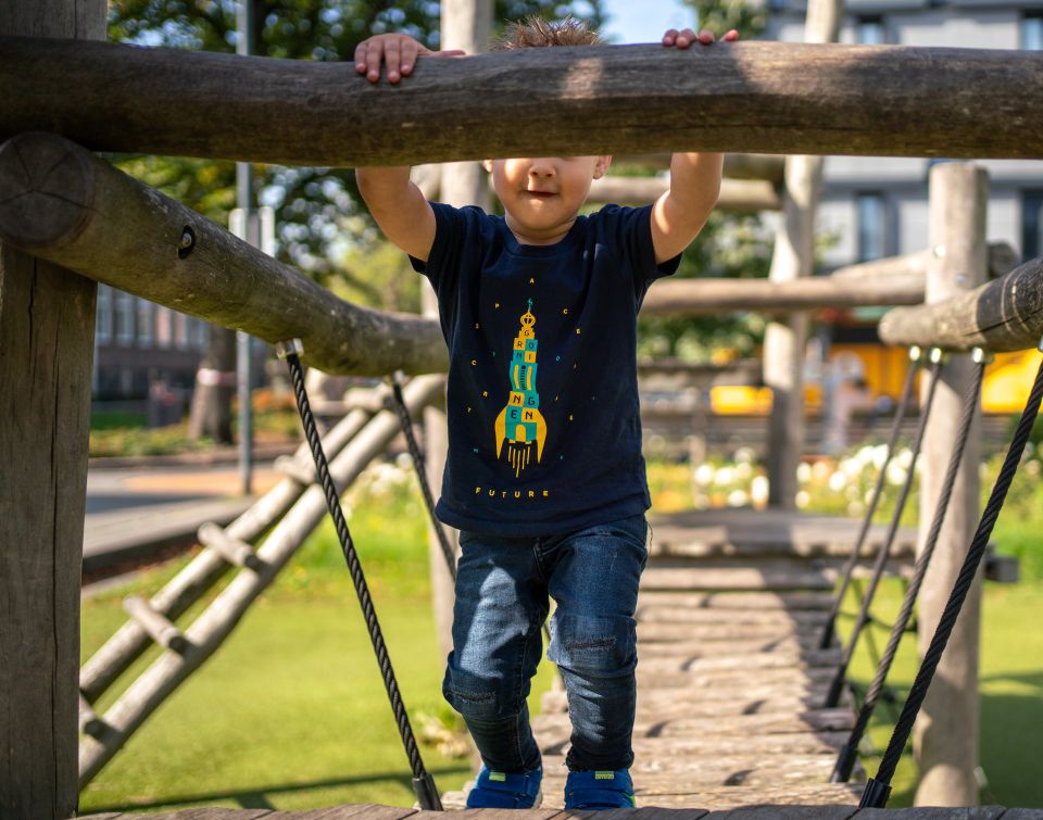 Groeien doe je in Groningen. Letterlijk. Voor je het weet pas je al niet meer in je rompertje. Gelukkig zijn er ook voor de volgende generatie kleine Groningers toffe shirts te koop. Groningen is de jongste stad van Nederland. Daar zijn we maar wat trots op.