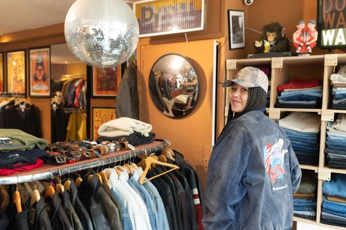 Oude Kijk in Het Jatstraat 63 - Bij Op de Kop is geen vierkante centimeter onbenut. In zijn winkel in de Oude Kijk in ’t Jatstraat verzamelt Han retro design, glas en keramiek uit de jaren zestig en zeventig. Lampen voeren de boventoon in alle vormen en maten, en eigenaar Han zit er vaak letterlijk tussen. Alles is met zorg gevonden, nooit online, want hij wil het zien, voelen en vasthouden. Op de Kop is geen winkel om snel doorheen te lopen, maar een plek om te dwalen.