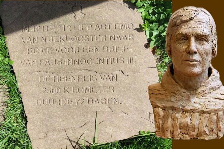 Emo had de kerk van Wittewierum geschonken gekregen als vestigingsplaats voor zijn klooster. Helaas had de bisschop deze schenking ongedaan gemaakt. Hierdoor zag Emo zich genoodzaakt steun te verwerven voor zijn klooster bij de paus in Rome. Emo heeft zelf veel aantekeningen gemaakt tijdens zijn reis, waardoor we niet alleen veel te weten komen over het Europa van de 13e eeuw, maar ook over Emo zelf, over zijn angsten en twijfels, zijn onzekerheden en stelligheden. In 1852 is de Rijksuniversiteit van Groningen in het bezit gekomen van de Kroniek van de abdij Bloemhof. Dit is een laat 13e-eeuws handschrift geschreven door de opvolger van Emo, Menko. Hiervoor had Menko de aantekeningen van Emo over zijn reis naar Rome tot zijn beschikking. Deze kroniek werd al snel beschouwd als belangrijke bron voor de geschiedenis van Groningen en Friesland.
