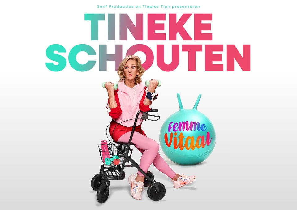 Natuurlijk zijn we enorm blij dat we in dit jubileumjaar Tineke Schouten weer mogen begroeten. Hoewel ze de pensioenleeftijd ruim is gepasseerd staat ze nog avond aan avond voor uitverkochte zalen. Als je haar op het toneel ziet rennen en vliegen, vraag je je af hoe zij het moordend hoge tempo van haar shows volhoudt. En dat is precies de vraag die Tineke zichzelf stelt in haar nieuwe show Femme Vitaal. Achter de geraniums zitten is niks voor haar, maar erachter vandaan komen wordt steeds moeilijker. Dus gaat ze op zoek naar het geheim van de eeuwige jeugd. Elke ochtend meedoen met Nederland in Beweging, of toch gaan voor De Perfecte Verbouwing? Met haar vaste band neemt ze…