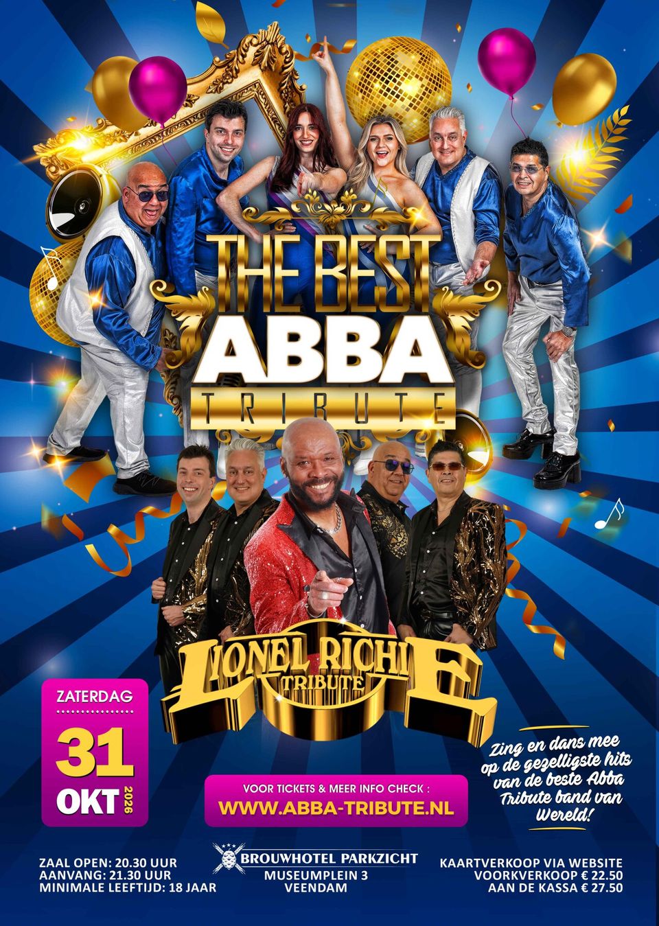 Naast ABBA staat ook de Lionel Richie Tribute band op het podium. Leadzanger John Oldenstam, bekend van grote musicals zoals The Lion King en Dirty Dancing, brengt de onvergetelijke klanken van Lionel Richie tot leven.