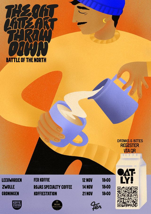 Oatly gaat op pad met niet één, niet twee, maar drie epische latte art-evenementen – in Leeuwarden (12 november), Zwolle (14 november) en tot slot de finale in Groningen (21 november).