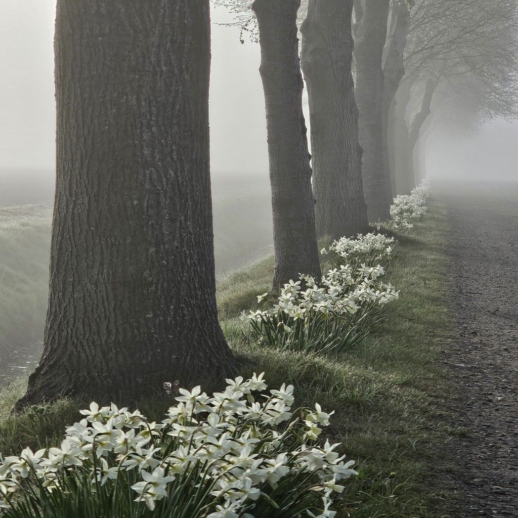 De witte narcissen langs de 450 m. lange laan tonen hun laatste bloei. In de tuin ziet de bezoeker honderden bloeiende tulpen, deels in potten. Ook stinzenplanten blazen hun partijtje mee!
