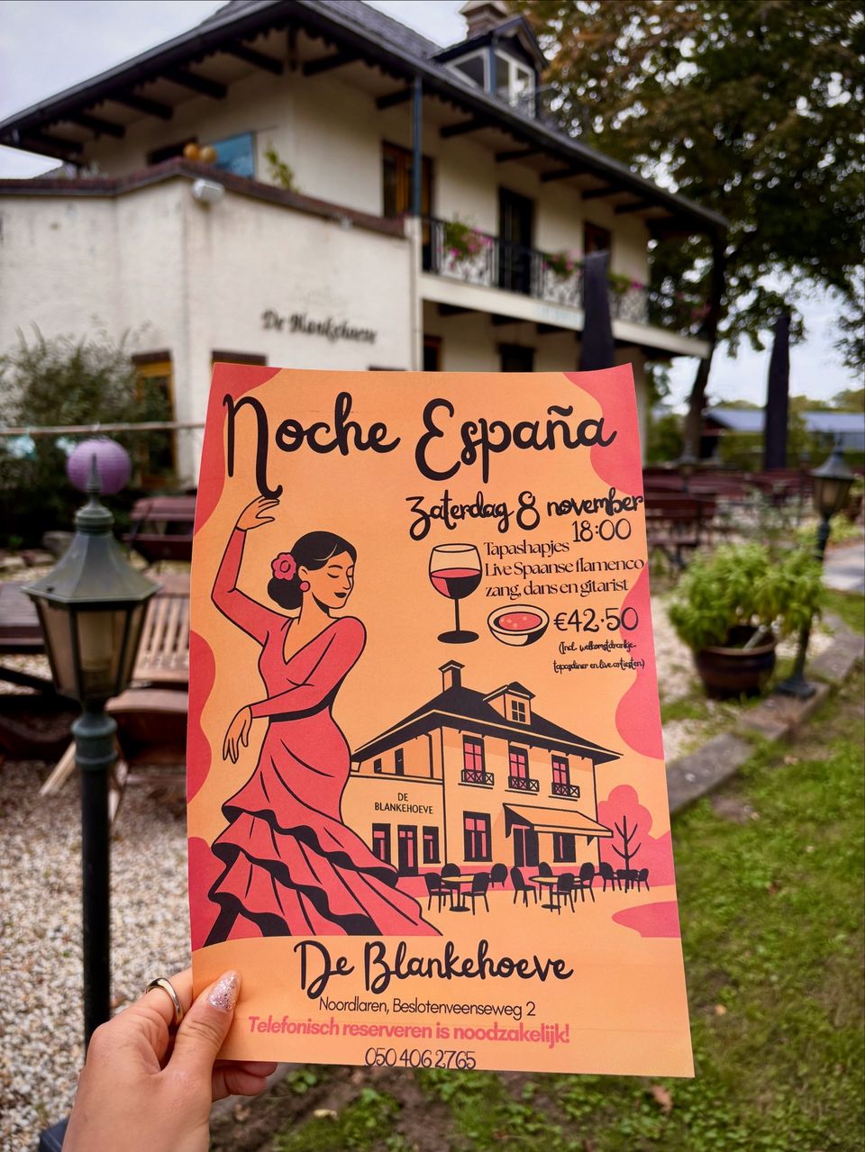 De avond wordt compleet gemaakt met verschillende tapasrondes aangevuld met live Spaanse gitarist en Spaanse flamencodans en zangeres, zodat je niet alleen kunt proeven maar ook de échte Spaanse beleving ervaart.