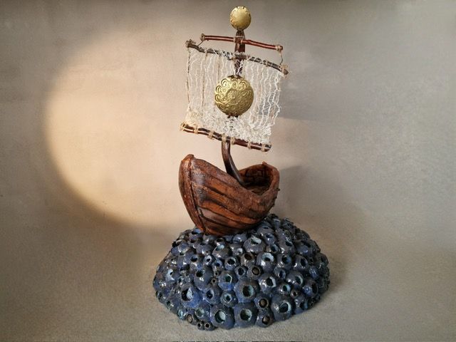 Jessica is bovenal keramist, ze heeft inmiddels ruim 30 jaar ervaring met dit materiaal, wat haar uitdaagt tot onderzoek en experiment. In haar serie schepen heeft ze ook gewerkt met materialen die zij heeft gevonden langs het Reitdiep, de prachtige rivier die meandert door de provincie Groningen en langs het huis van de kunstenaar uit de Ruigezand Polder nabij Electra loopt. De zeilen van de schepen doorsnijden als het ware de akkers, als Jessica vanuit haar huis richting de rivier kijkt die verscholen gaat achter een dijk. De rivier staat voor beweging en het verstrijken van tijd. Twee thema’s die Jessica graag laat spreken in haar objecten. Schepen symboliseren voor haar vrijheid, iets dat de kunstenaar na aan het hart ligt. In deze onrustige tijden in de wereld is vrijheid een groot goed. ‘Dat ik dit met mijn kunst mag en kan verbeelden vind ik heel waardevol. Vrijheid is immers kostbaar en zeker niet vanzelfsprekend’.
