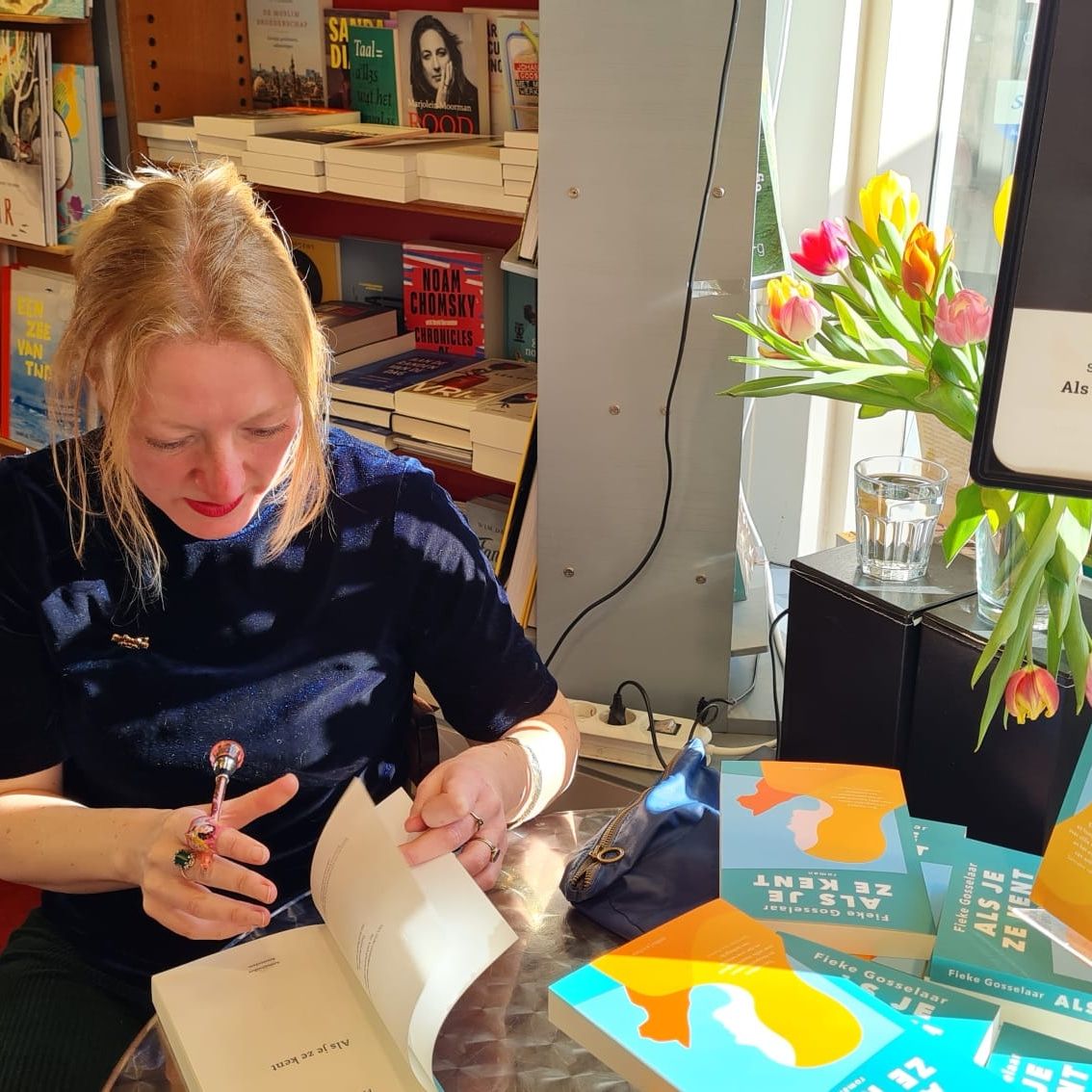 Fieke Gosselaar schrijft romans, korte verhalen en soms een gedicht. Haar verhalen spelen zich af in de polders van Finsterwolde, in de Oosterparkwijk of op een plek in haar hoofd. Daarnaast schreef ze ruim acht jaar columns voor RTV Noord en is de Groningse taal, naast haar schrijven, haar werk geworden als aanpeerdjeder. Fieke is als streektaalconsulent namelijk ook aanjager van het gebruik van het Gronings. Momenteel werkt ze aan haar vierde roman, waarbij - zoals vaker in haar werk - het zoeken naar verbinding tussen haar personages een grote rol speelt.