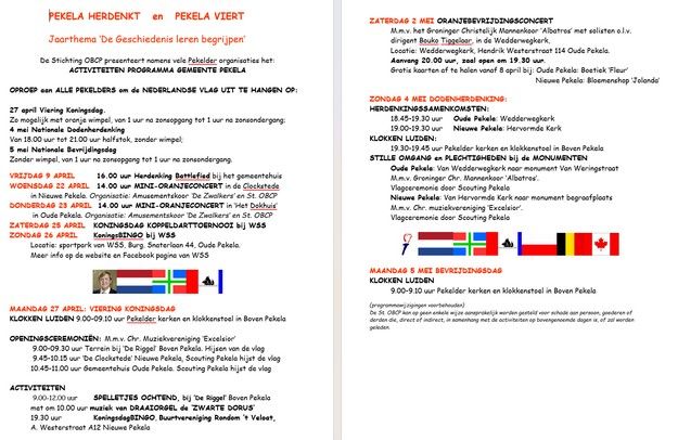 Het Oranje Bevrijdings Comité Pekela (OBCP) heeft, in samenwerking met het gemeentebestuur en diverse lokale verenigingen, een uitgebreid activiteitenprogramma gepresenteerd voor de komende weken.