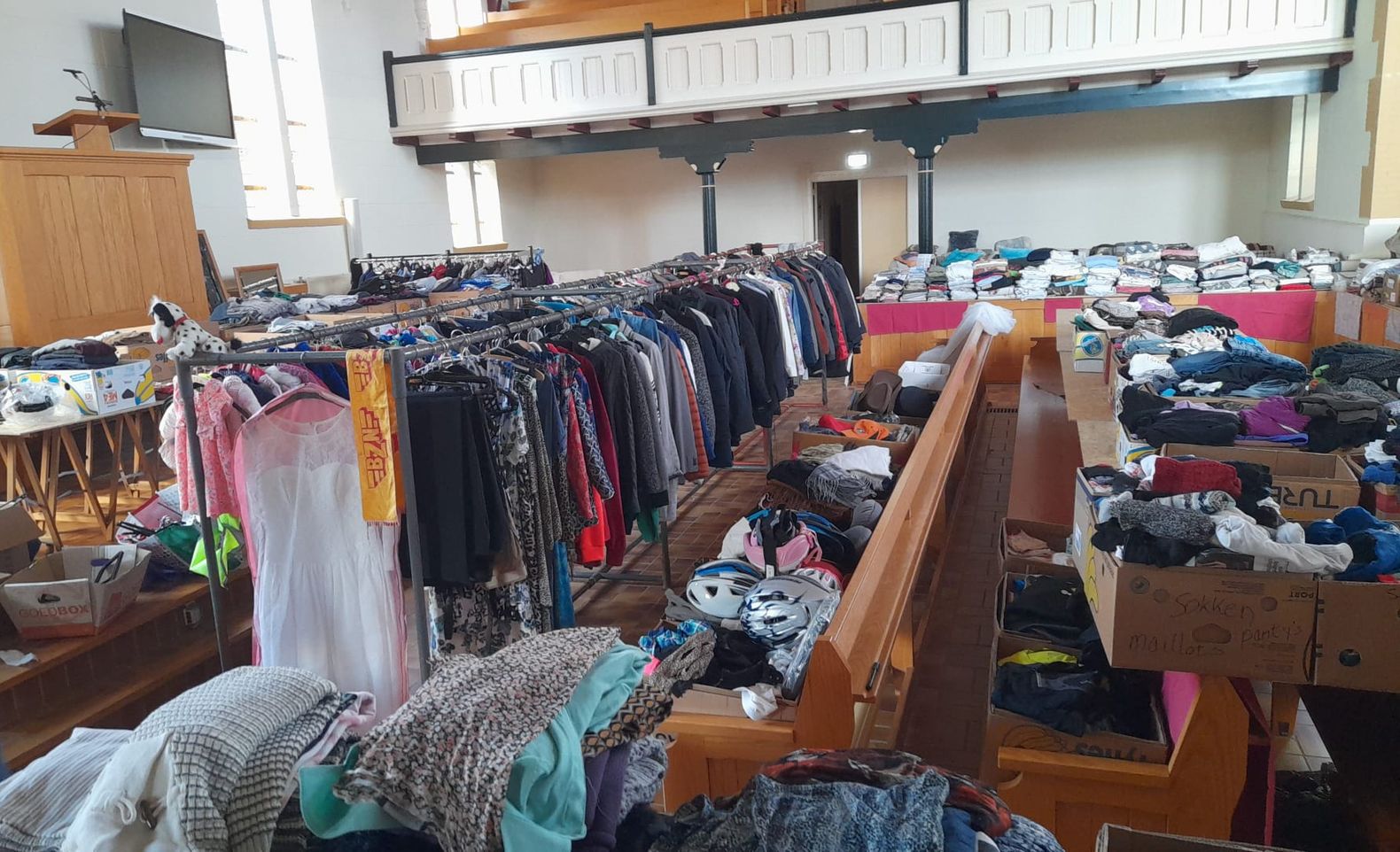 De rommelmarkt vindt plaats in en rond het verenigingsgebouw