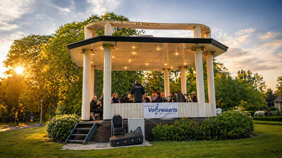De mooiste muziekkoepel van het Noorden staat aan de Plantsoenlaan in Wildervank,” zegt initiatiefnemer Bert Kraan. Veel inwoners delen dat gevoel: de koepel is een geliefde plek voor sfeervolle zomeravondconcerten.