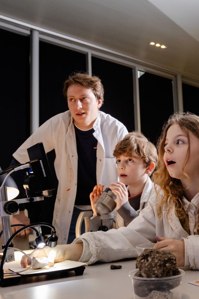 Doe wetenschappelijke proefjes In een echte lange witte labjas maak jij je heerlijk geurende badzout, natuurlijk met een leuk kleurtje. Ben je nieuwsgierig en wil je meer weten over bijzondere wetenschappelijke verschijnselen? Dan moet je zeker even naar de experimentenhoek! Weet jij bijvoorbeeld al hoe een plasmabol of prisma werkt? In de experimentenhoek krijg je antwoord op veel vragen. Daarnaast kun je zelf een optische illusie knutselen. Ontdek het menselijk lichaam Altijd al willen weten hoe ons lichaam er precies uitziet? In de experimentenzaal puzzel je zelf het lichaam in elkaar en kom je erachter welke functies onze organen hebben. In de tijdelijke tentoonstelling Brainstorm kun je veel leren over je hersenen. En in de hersenhoek kun je de kennis over je hersenen testen door onder andere hersenproefjes te doen. Bekijk de prachtige natuur Met de verschillende microscopen bekijk je de wereld om je heen van dichtbij. Er zijn tientallen preparaten voor onder de microscoop! Of bekijk eens hoe je eigen vinger er onder de microscoop uitziet, heb je je nagels wel schoongemaakt? In de schedelhoek speel je vervolgens de schedelquiz en ontdek je hoe een schedel van een uitgestorven holenleeuw eruitziet. Datum & tijd Zaterdag 18 oktober t/m zondag 26 oktober van 10:00-16:00 (ook op maandag geopend) “Deze activiteit is onderdeel van Oktober Kindermaand: dé maand waarin kinderen gratis kunnen meedoen aan allerlei leuke en leerzame activiteiten in de hele provincie! Kijk op www.kindermaand.nl voor meer informatie en activiteiten.”