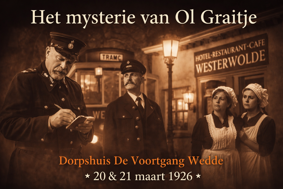Rederijkerskamer Filia brengt, met medewerking van de Burchtspelers en Shantykoor Störmwind, op 20 en 21 maart de voorstelling Het mysterie van Ol Graitje in dorpshuis De Voortgang in Wedde.