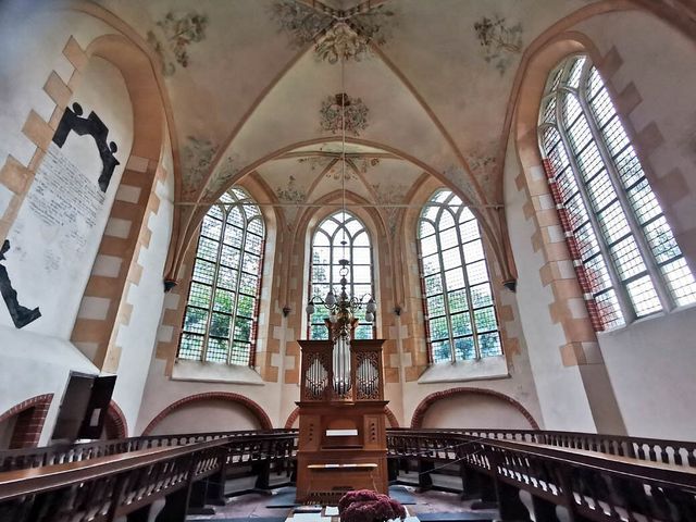 Deze 15e eeuwse bakstenen kruiskerk is een van de mooiste voorbeelden van laatgotische kerkbouw in Groningen. In de muren is hier en daar tufsteen verwerkt, waarschijnlijk afkomstig van de oude romaanse kerk.