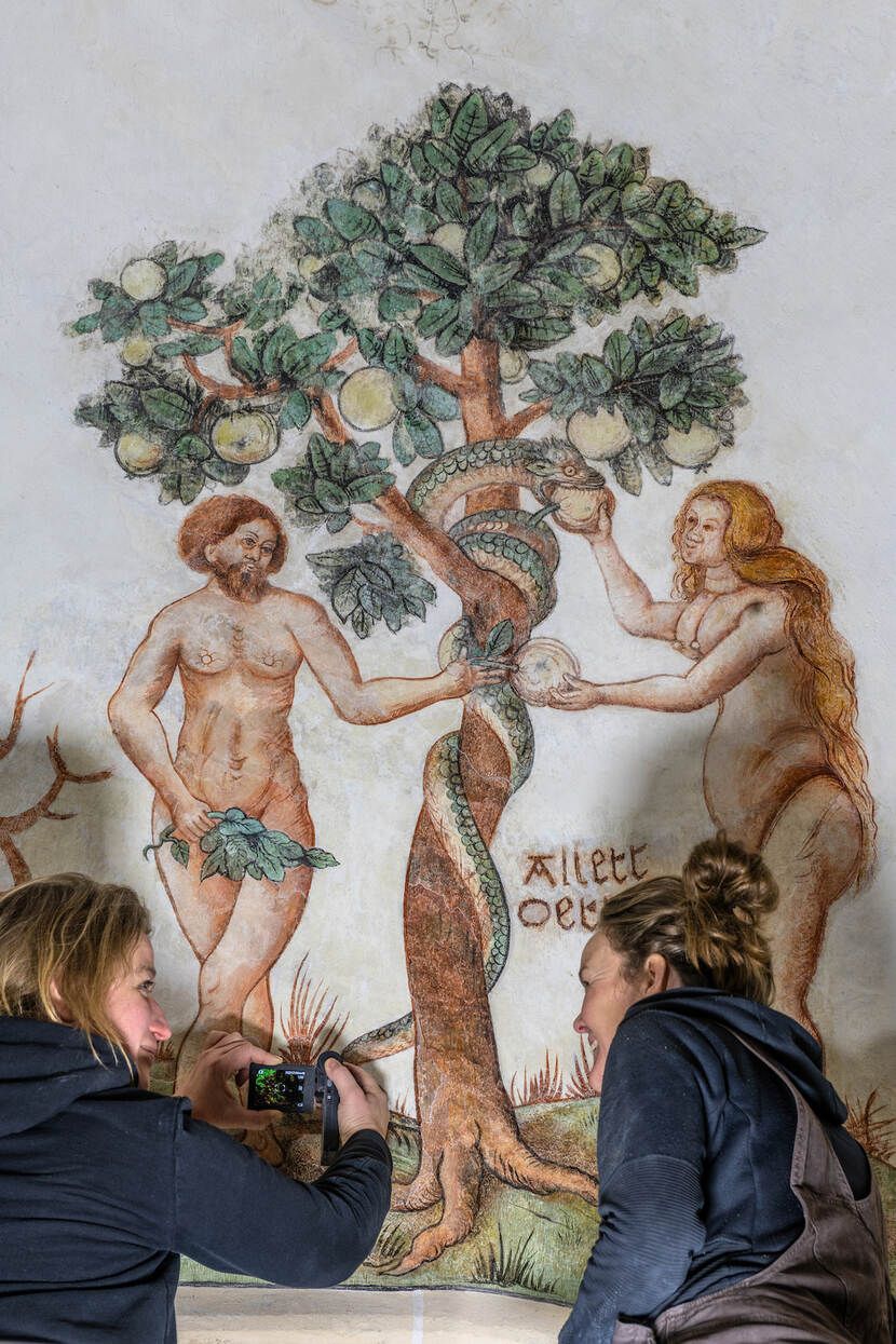 Het schitterende interieur biedt veel bezienswaardigheden. Zo zijn er 16e eeuwse muur- en gewelfschilderingen, is er een epitaaf ter ere van Egbert Onsta, en een sacramentsnis van gele Bentheimer zandsteen. De noordelijke ingangsdeur uit circa 1500 is een van de weinige overgebleven middeleeuwse deuren in Groningen. De toren uit 1487 kreeg in de 17e eeuw een koepel waarin later een carillon werd geplaatst. In de toren zelf hangt een luidklok uit 1520. Carillon en klok werden in WO II door de Duitsers geroofd, maar in 1946 weer teruggehangen in de toren.