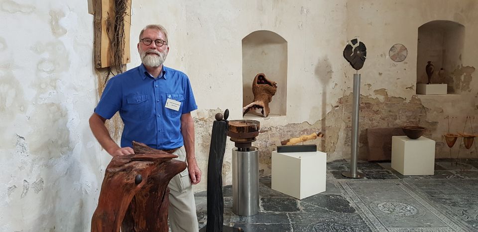 Hoogezand - De één ziet er duidelijk een gezicht in, de ander een vrouw met uitgestrekte armen. De houten kunstwerken van Albert Jan Rouwkema zijn vatbaar voor meerdere interpretaties. In Atelier De Draai bewerkt hij het hout met de draaibank, maar combineert het ook met glas of metaal. Soms laat hij het juist ongepolijst en blijft de ruwe oorspronkelijke vorm zichtbaar. En zijn materiaal komt altijd uit de nabije omgeving.